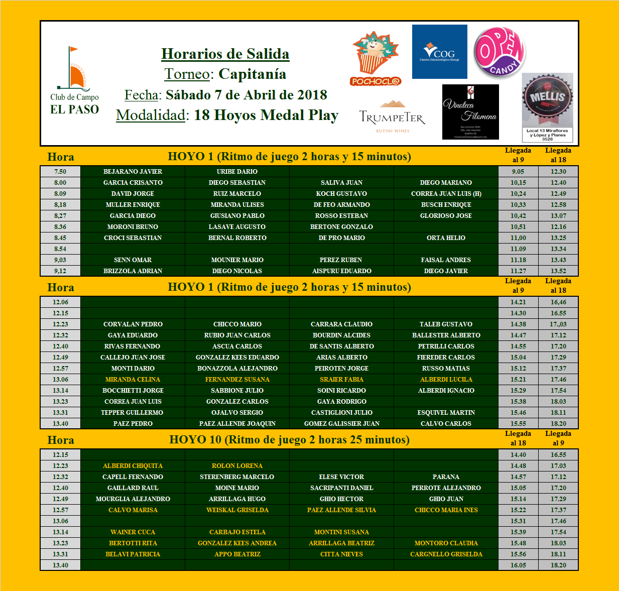 HORARIOS SABADO 07-04-18