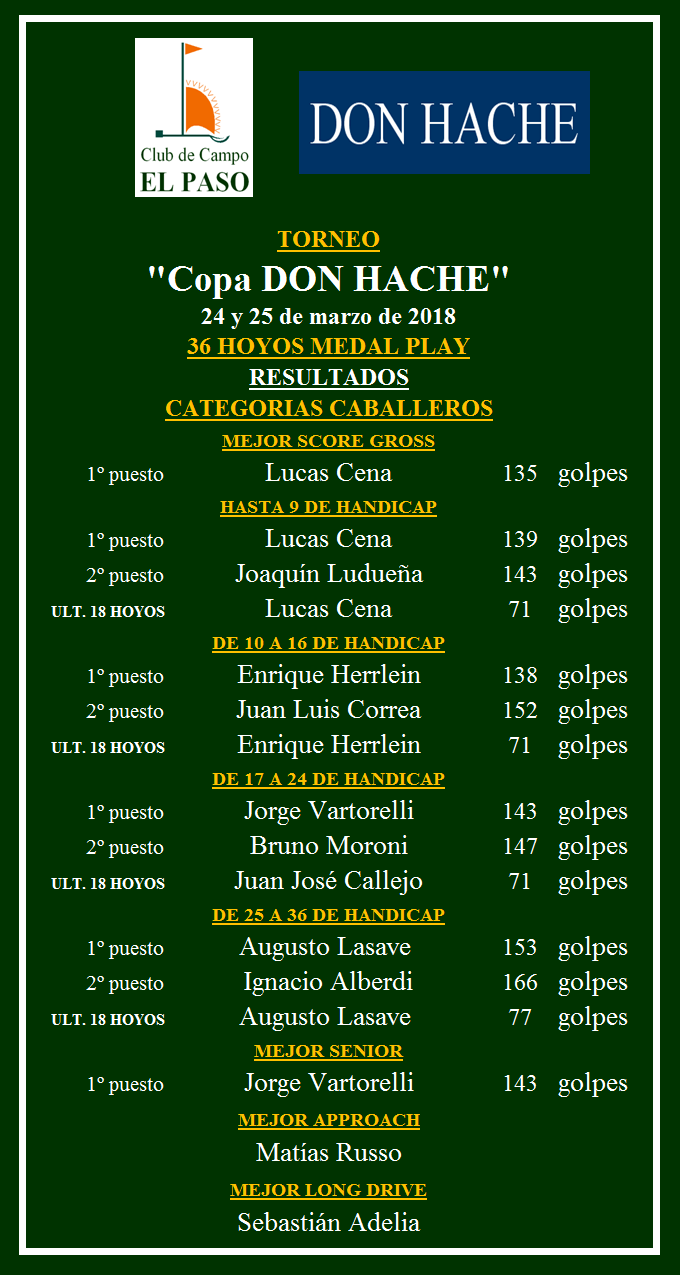RESULTADOS DON HACHE 2018 2
